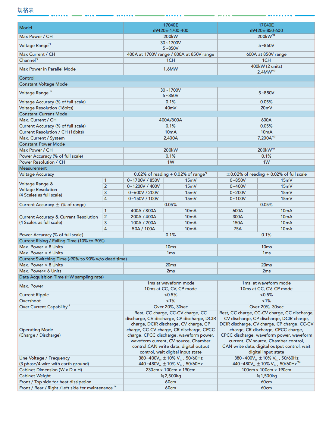 Chroma 17040E电池模组测试系统是专为高功率二次电池组测试而开发的高精密充放电设备,具有能源回收功能,可节省放电过程所消耗的大量电能,即使动态充放电,也能确保电网端维持稳定,不致因谐波污染影响其他设备。